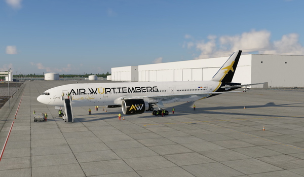 The AirWürttemberg Livery Pack for the Boeing 777-200ER (Flight Factor) features the official livery for the aircraft regi...